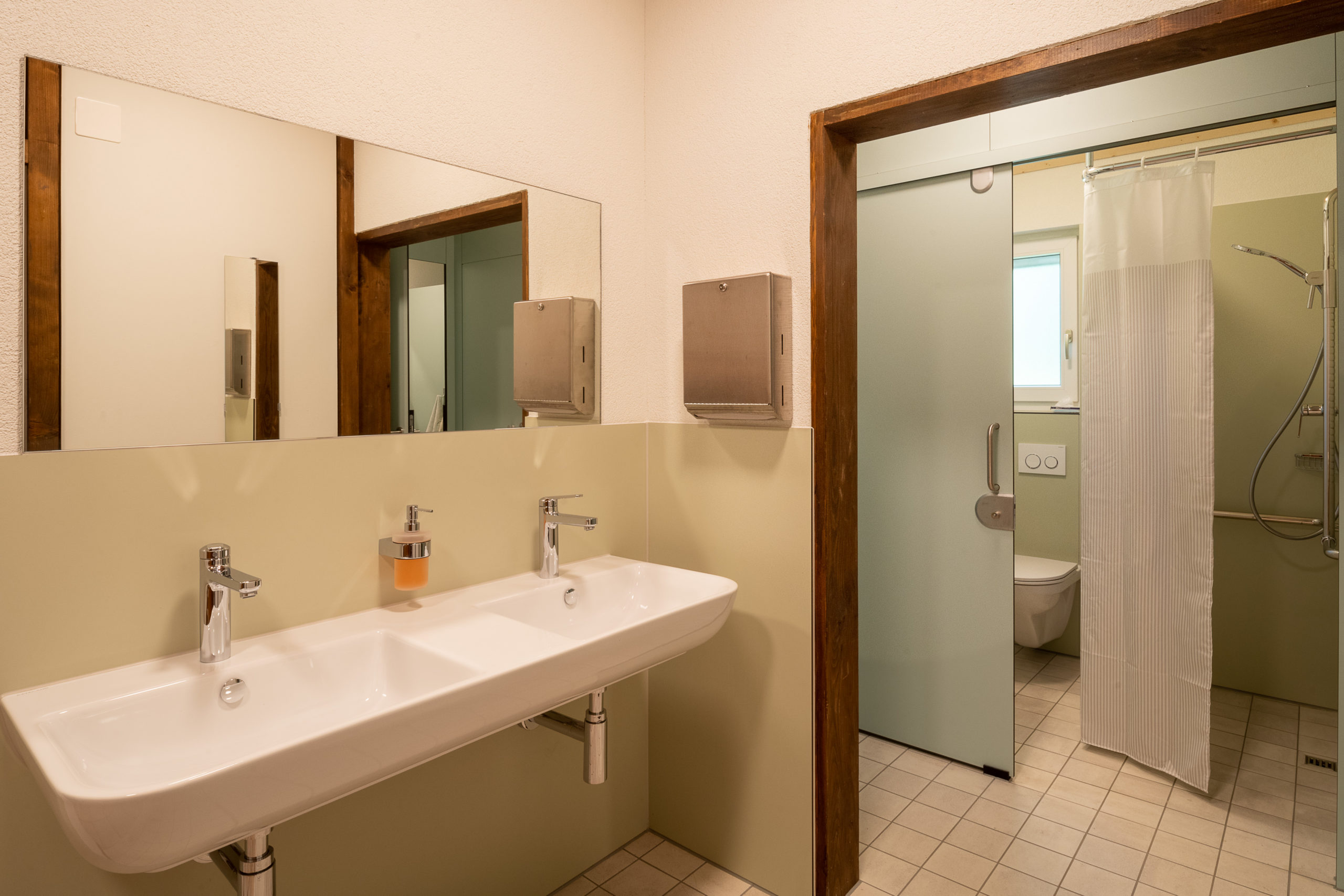 Drei Waschräume mit Duschen